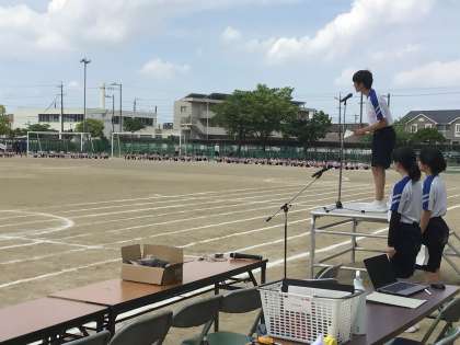 閉会式で、生徒会長から今日のこの状態は、弓矢を引っ張った状態だと例えて話がありました。