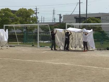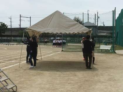 練習の時間に、保護者や地域の方が、テントの設営をしてくださいました。