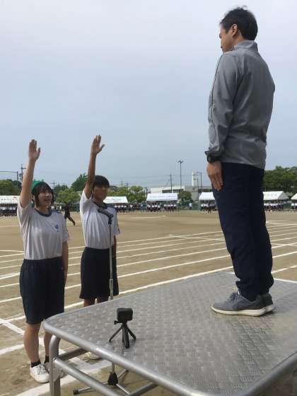 ここまでのがんばりや体育祭への決意、地域の方々への感謝の気持ちなどを話しました。