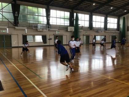 今日は、導入段階としてドッジビーでパス練習などを行いました。