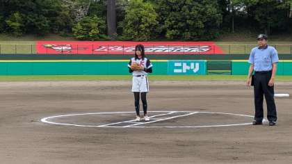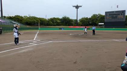 豊田市運動公園野球場で行われた、リーグ第6節の第1試合前に行いました。