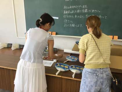今年度の応援うちわを各学級で配布できるように、育友会の方が仕分けをしにきてくださいました。