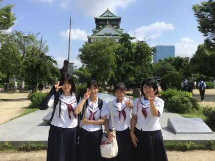 はじめにいくつかの学級が大阪城、大阪天満宮に行きました。 大阪城です。