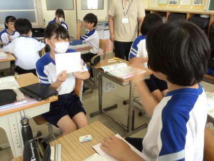 これは何ですか?という会話のやり取りを、クイズゲームのように練習していました。
