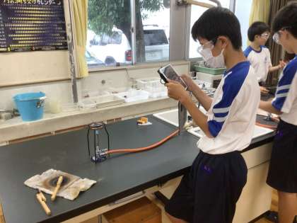 マグネシウムをガスバーナーで熱していました。