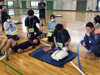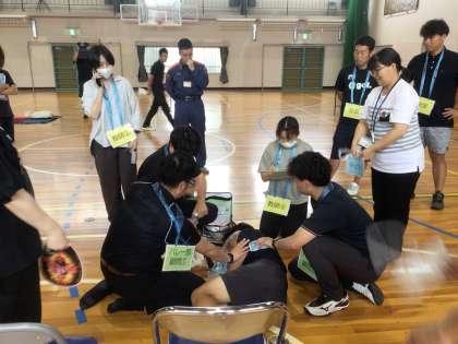 生徒下校後、南消防署の職員の方を講師にお招きし、救急シミュレーション研修を行いました。
