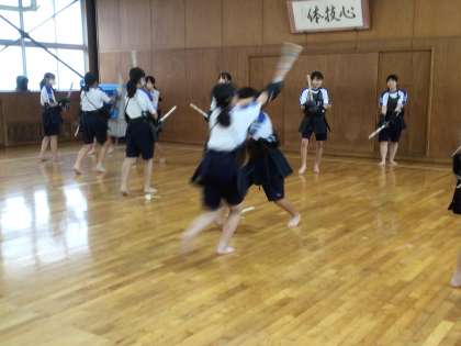 勝負は一瞬、剣道部の生徒と先生がお手本を。