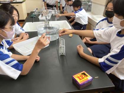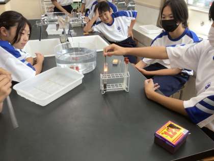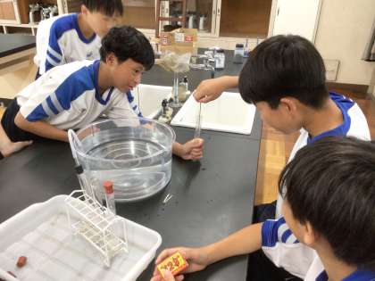 酸素ができたかどうかを調べるために、火をつけた線香で確かめました。