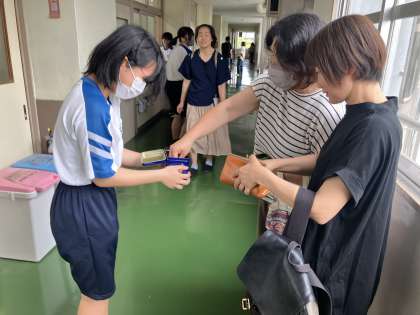 昨日の学校公開日で、委員会の生徒が放課に募金活動を行いました。