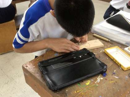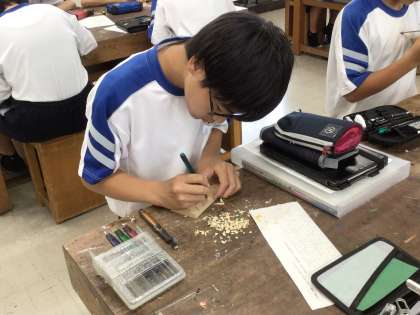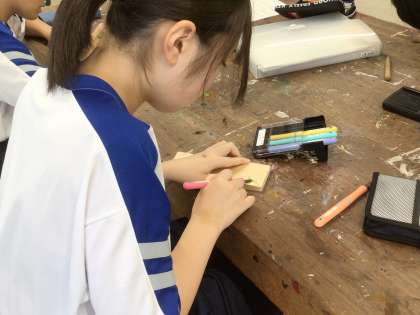 下絵にそって、ていねいに彫り進めてました。