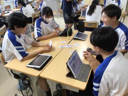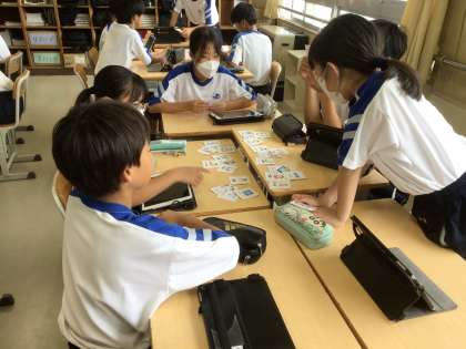 もし、インターネットやSNSでこんなトラブルに巻き込まれてしまったらどう対処するかを、トラブルカードを使ってグループで考えました。