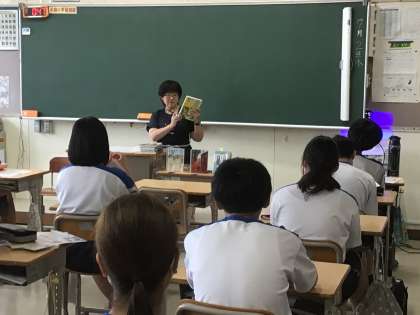 図書館司書の先生が、夏休みの課題図書やおすすめの本の紹介をしてくださいました。