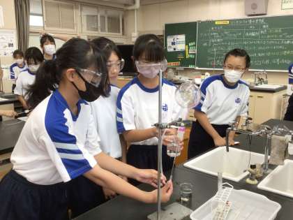 器具をセットして、チューブをビーカーの中の液体に入れると・・・。