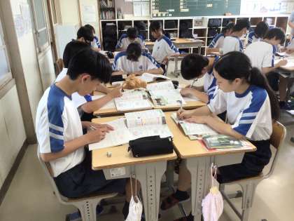 全体で説明を聞いた後、隊形を変えて、それぞれまとめていました。