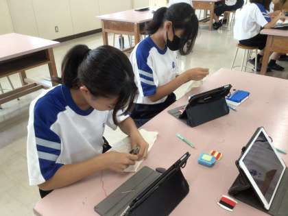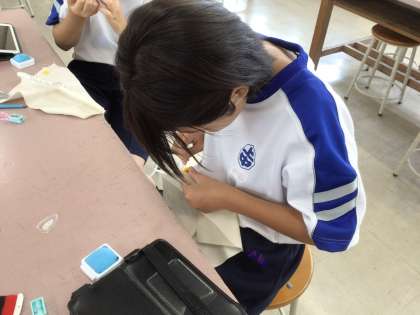 ボタン付けに挑戦していました。