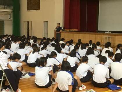 進路担当の先生から、夏休み中に行われる体験入学について話がありました。