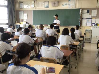 上中タイムの時間に、生徒会役員の生徒がステップアップウィークの取組について説明していました。