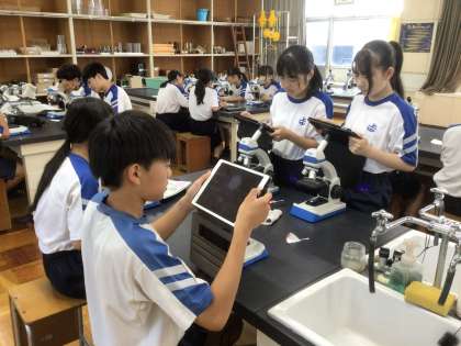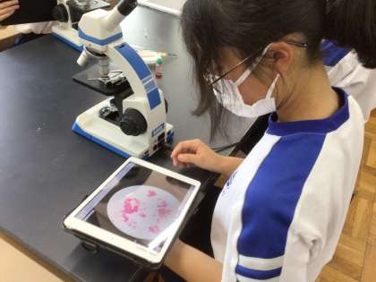 学習用タブレットで写真を撮り、学習ノートに貼り付けてまとめます。