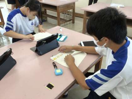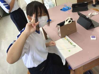 すでにたくさんのボタンを縫い付けた生徒もいました。