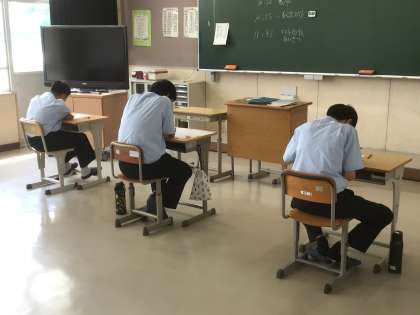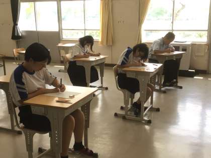 3時間目、1・2学級の生徒は数学の期末テストを行いました。