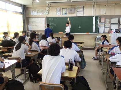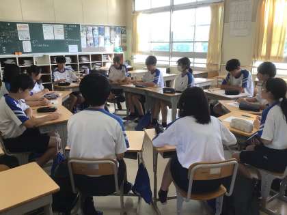 委員会や級長会、生徒会の生徒たちが、前期の振り返りをしていました。