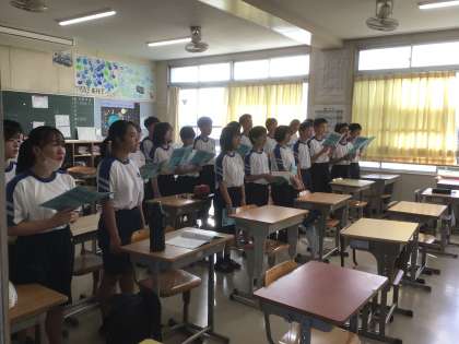 合唱練習に取り組んでいます。 まずは、発声練習ですね。