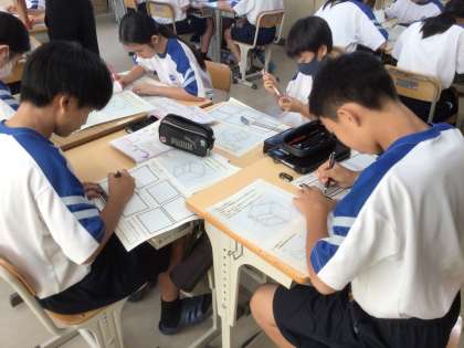 課題となる図を、正面、側面、上から見た図に置き換えていきます。