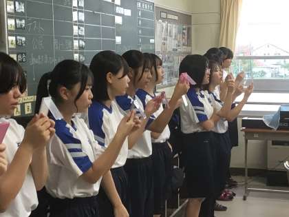 手鏡で表情や口の形をチェックしているところもありました。