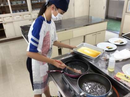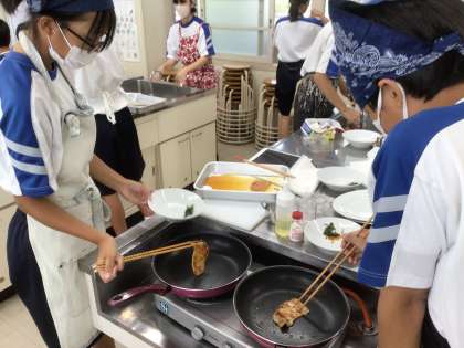 匂いに誘われ階段を上っていくと、2年生が調理実習をしていました。