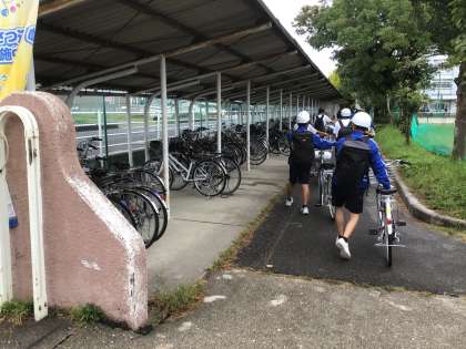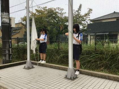 後期生徒会役員の生徒が、国旗などを掲揚していました。