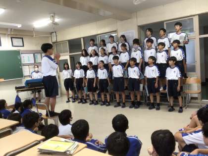 1年生が、3年生と歌い合わせをしてもらっていました。