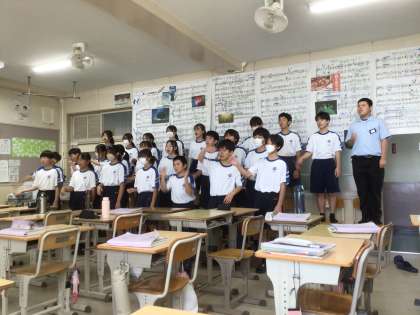 教室で練習していた1年生です。
