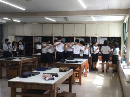 下は、次の授業が美術ということですが、美術室でもパートごとに集まって練習する3年生です。