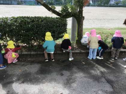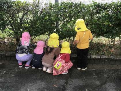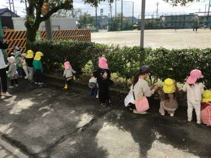 上郷こども園の園児が、今年も上郷中学校にどんぐり拾いに来てくれました。