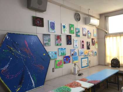 地域学校共働本部室に、文化芸術部の生徒の作品(絵画)が展示されています。