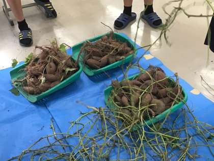 午前中に畑に植えていたサツマイモの収穫をしたそうです。