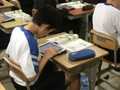 二十日大根の栽培を経て、学校で育てるのに自分ならどのような栽培方法で行うか、ということを考えて学習用タブレットにまとめていました。