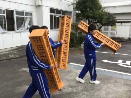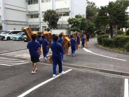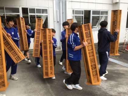 三河上郷駅前広場のイルミネーションに花を添えるべく、3年生が美術の時間に制作した作品を組み込んだ上郷ランタンの設置に出かけました。