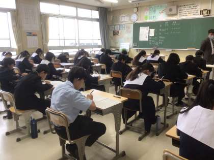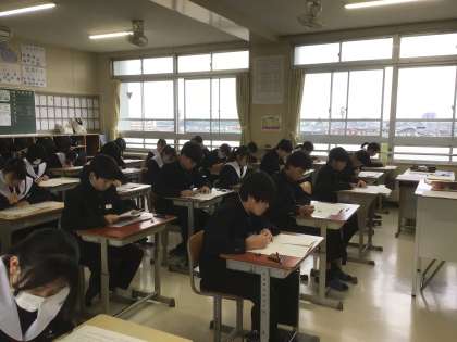 テストが始まりました。 1年生は、国語からですね。