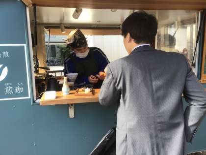 前に学校に来てもらったキッチンカーの方のところで体験しました。