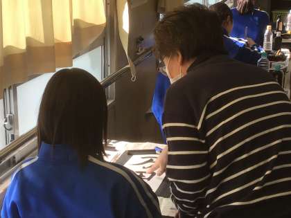 書道ボランティアさんが、生徒たちに助言してくださいました。