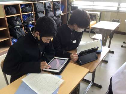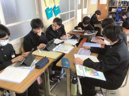 1年生は、総合的な学習の時間に、発表の準備に取りかかっていました。