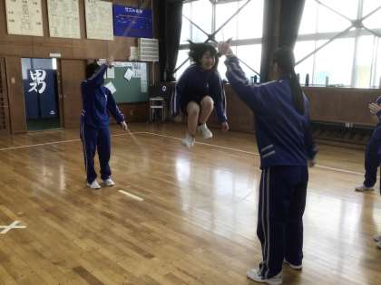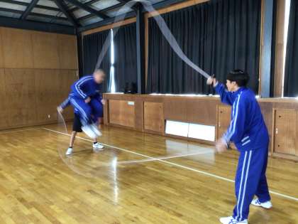 縄跳びのダブルダッチに挑戦していました。