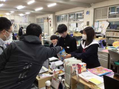 今朝は、福祉委員の3年生が職員室にも協力の依頼に来て、先生たちも快く応じていました。