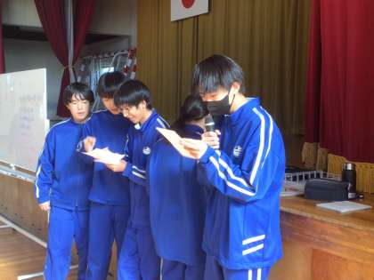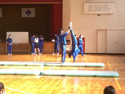 演技者が事前に提出した技をアナウンスし、グループごとに生徒がチェック表で採点します。