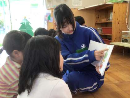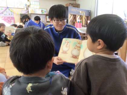 園児の反応をみながら読み聞かせをしますが、なかなか難しそうでした。
