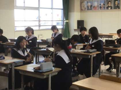 教室に入ると曲を演奏する練習をしていました。