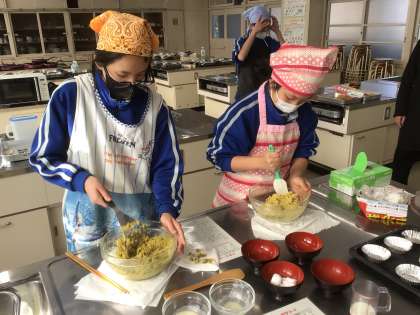 蒸したサツマイモに牛乳とバターを加えてしっかりと混ぜ合わせます。