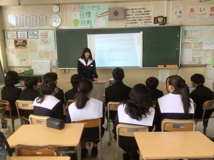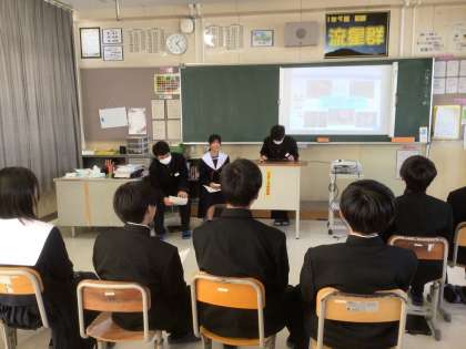 それぞれの探究課題について、インタビューなども交えながら調べ、自分なりの考察を含めて発表していました。