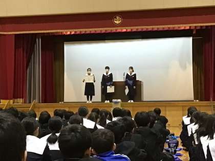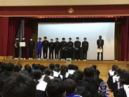 男子バレーボール部、科学研究、ポスターの表彰披露です。